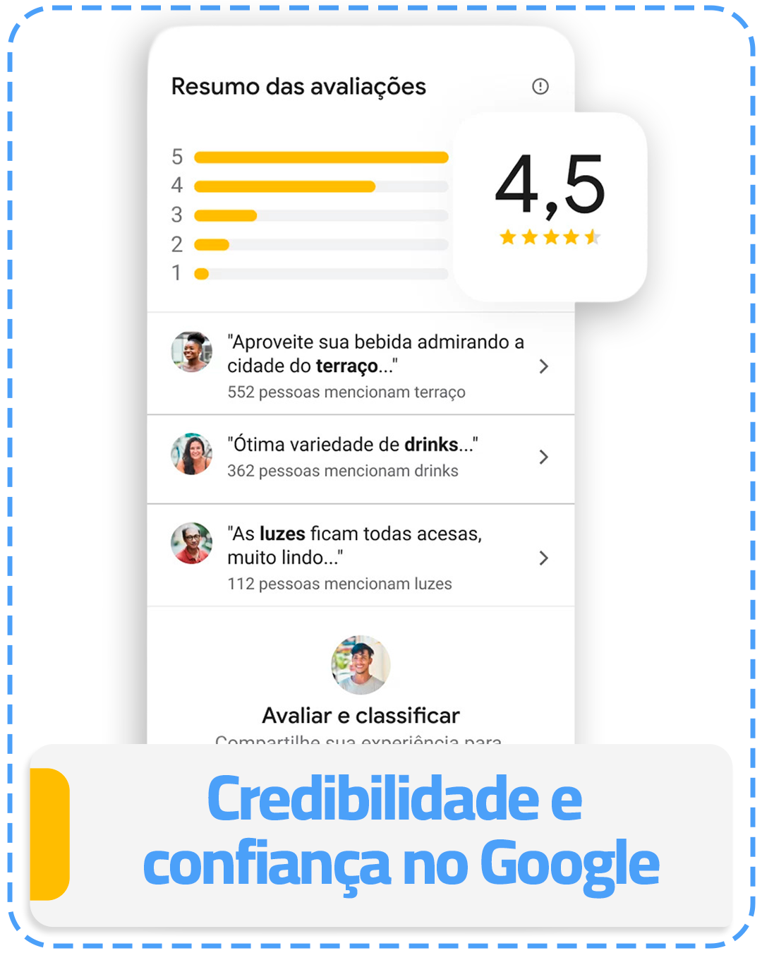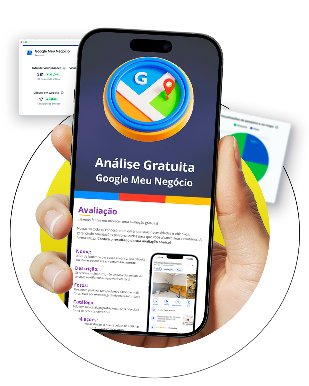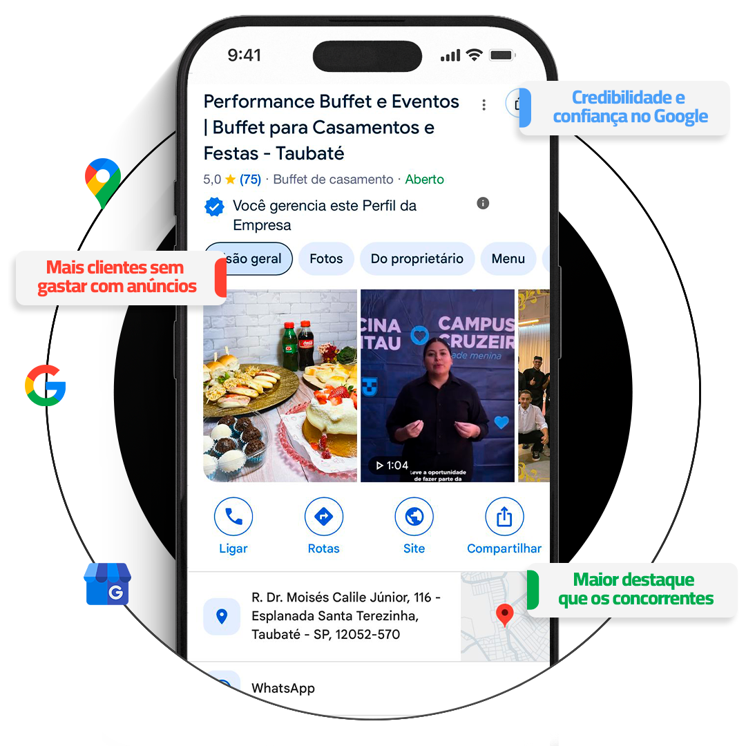 Com nossa equipe, garantimos que sua empresa seja facilmente encontrada. Criamos um perfil envolvente, destacando serviços, avaliações e ofertas para atrair clientes.